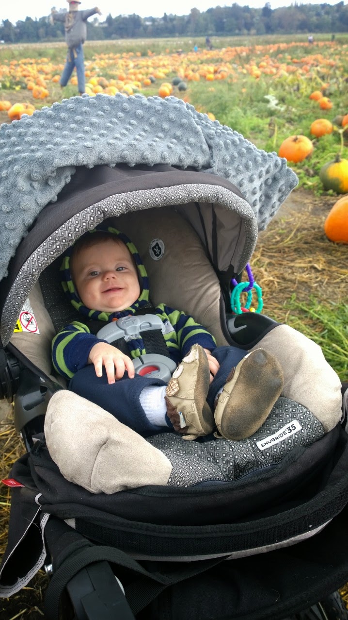 I hate to even say it out loud for fear of jinxing things, but he/we have finally hit a rhythm when it comes to sleep. To be fair, Conway has been a pretty good sleeper from the beginning, but he was changing so quickly that I couldn't seem to get a handle on his sleep needs. This month we finally dropped the dream feed. I was thinking about phasing it out, but instead one night when David was out of town I just decided to see what would happen if I didn't wake him up and feed him at 10:30pm before I went to bed. Well, what happened was that he slept until 7:15am. Praise the Lord! He has also stopped having a party for one in his crib during the night and I wonder if that was happening because I was messing with his sleep rhythm by waking him up for the dream feed. I don't know the answer to that and I'm just going to be happy with where we are. Yet another sleep positive is that he seems to be able to sleep through more noise during the day. He went through a patch of being a pretty light sleeper and at least for now he's back to sleeping through Parker's noisiness during Conway's naps. He has also completely given up his third nap, which was a bumpy transition, but has been kind of nice for our afternoons because we've been able to go for walks or head to the playground without Conway's nap getting screwed up. Well, we'll be able to do those things in the afternoon for one more day until daylight savings ends and it's already dark when the boys get up from their naps. Oh well. The hardest part about him dropping the third nap has been how tired (and grumpy) he gets by the end of the day. We tried moving his bedtime up, but I've figured out that at least for now he's roughly an 11-hours-of-sleep-a-night kid. So putting him to bed any earlier meant waking earlier in the morning and that I do not want. Feeding at 6:30pm and then giving him dinner seems to have made him a bit happier in the evening, though. He still nurses again right before he goes to bed which seems kind of silly since he just ate, but we're in a groove and I'm not messing with it. Conway is also waking up happy in the morning and from naps and can happily hang out in his crib for at least 15-20 minutes before we go get him if we need to. This is especially nice in the mornings if I'm still getting ready.